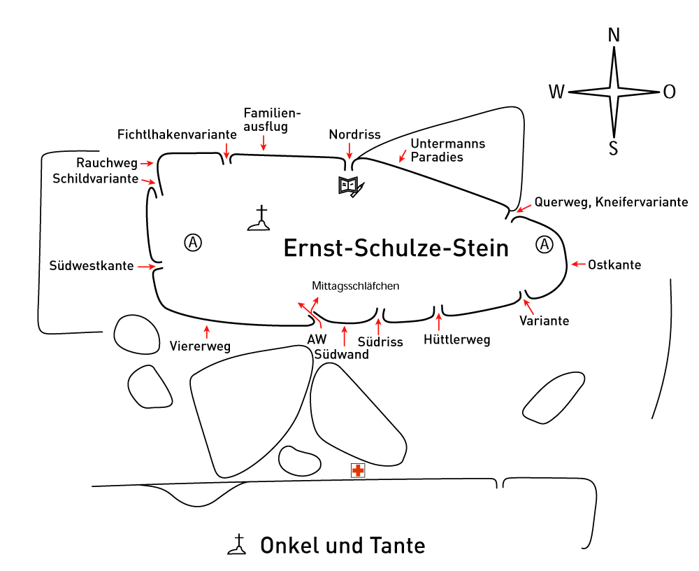 Einige Anstiegsskizzen wurden auf der Grundlage von Skizzen Manfred Thieles und Jürgen Schmeißers erstellt.