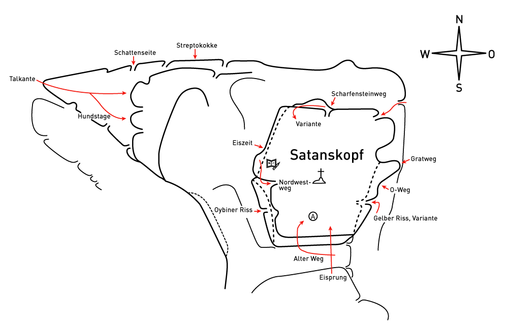Einige Anstiegsskizzen wurden auf der Grundlage von Skizzen Manfred Thieles und Jürgen Schmeißers erstellt.