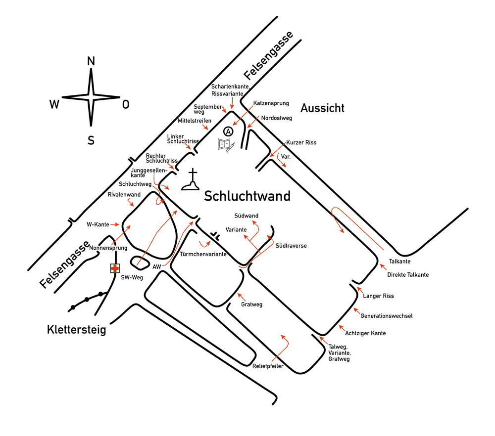 Einige Anstiegsskizzen wurden auf der Grundlage von Skizzen Manfred Thieles und Jürgen Schmeißers erstellt.